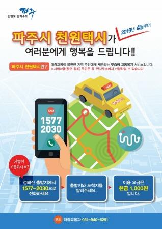 파주시는 주민들의 호응도가 높은 천원택시의 하반기 추가마을 선정을 위한 신청을 지난 12일까지 접수받았다.