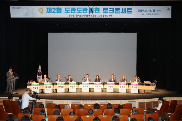 이날 토크콘서트에는 오피니언 리더인 지역의 이통장, 새마을지도자, 주민자치위원 및 각 단체 회원 등 300여명이 참석한 가운데 중리신도시개발에 즈음한 구도심 활성화 방안을 주제로 개최되었으며, 토론회는 이천시장의 인사말과 도시개발과장의 발제에 이어 주제에 대한 자유토론, 질의응답 형식으로 진행됐다.