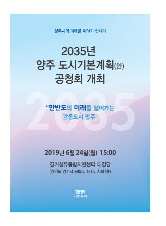 양주시는 오는 24일 오후 3시, 경기섬유종합지원센터 대강당에서 ‘2035년 양주 도시기본계획’에 대한 시민공청회를 개최한다.