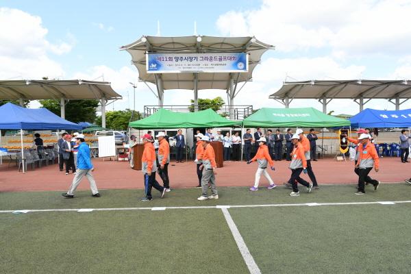 양주시그라운드골프협회가 주관한 이날 대회에는 무더운 날씨에도 불구, 도 11개 읍·면·동의 클럽선수들이 화합과 소통을 위해 참여했으며 입장식과 개회식후 이어진 경기를 통해 선의의 경쟁을 펼쳤다.