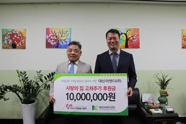 대신이엔디는 지난 12일 어려운 이웃을 위해 써달라며 안성시자원봉사센터에 후원금 1000만원을 전달했다.