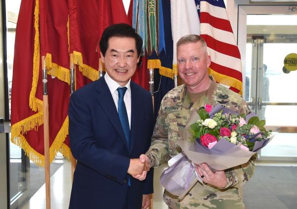 안병용 의정부시장은 이임하는 마이클 맥커리 행정부사단장에게 꽃다발과 선물을 전달했다. 또한 스콧 맥킨 미2사단장과 함께 한·미 안보와 동맹관계에 대한 대화를 나누며 한미동맹 관계를 앞으로도 굳건히 지속해 나가자는 뜻을 전달했다.