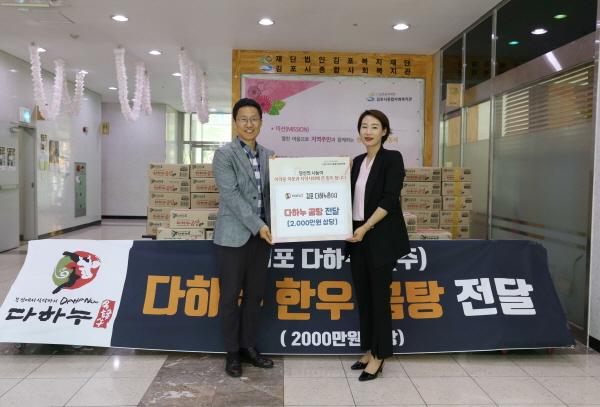 이날 후원된 한우곰탕팩은 지역 내 어려운 이웃 150여 가정과 지역복지기관에 후원품으로 사용할 예정이다.