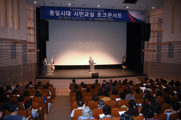 민주평화통일자문회의 오산시협의회는 지난 12일 오산문화예술회관에서 김문환 오산시부시장, 안민석 국회의원 및 지역 기관·단체장을 비롯한 시민 250여명이 참석한 가운데 ‘통일시대 시민교실’ 행사를 개최했다.