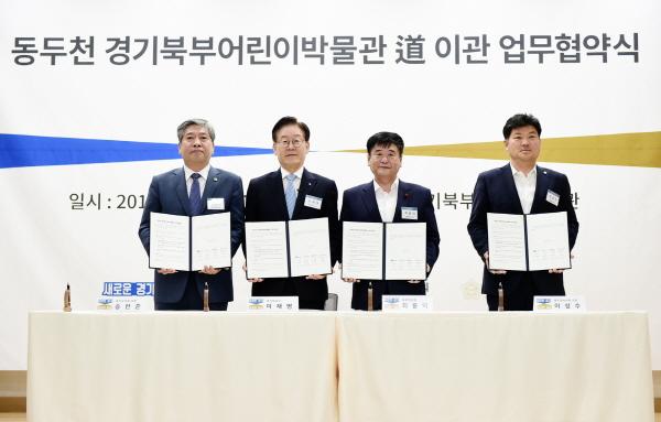 이재명 경기도지사는 최용덕 동두천시장, 송한준 경기도의회 의장, 이성수 동두천시의회 의장과 함께 13일 동두천 경기북부어린이박물관에서 이런 내용을 담은 ‘동두천 경기북부어린이박물관 경기도 이관’ 업무협약을 체결했다. 이날 협약식에는 경기도의회 김동철·유광혁 도의원 등 약 30여명이 함께했다.