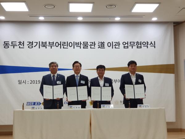 경기도와 동두천시는 13일 오전 동두천시 경기북부어린이박물관 강당에서 이재명 경기도지사, 최용덕 동두천시장, 송한준 경기도의회의장, 이성수 동두천시의회의장 등이 참석한 가운데 ‘동두천시 경기북부어린이박물관 道 이관 협약식’을 갖고 원활한 박물관 이관을 위해 상호 협력하기로 했다.
