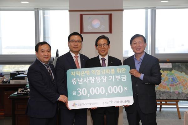 2008년 장학기금 적립을 시작한 KEB하나은행은 2016년부터 도내 학생들의 미래를 위한 교육 기부문화 실천의 일환으로 충남사랑장학금 평균잔액의 0.1%를 충남인재육성을 위해 기부하고 있다.