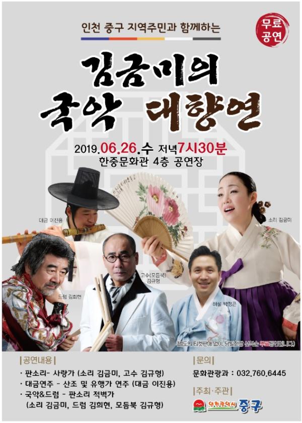 중구, 기획공연 “명창 김금미의 국악대향연” 무료공연 개최