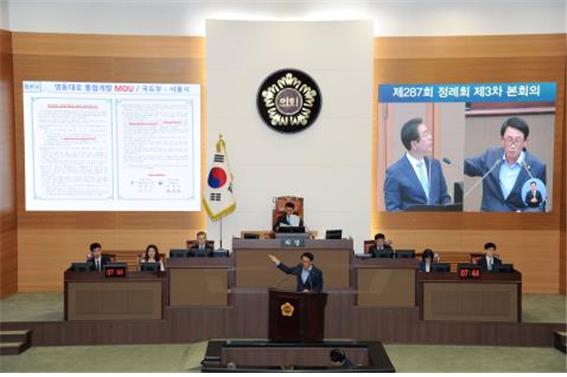 서울시의회 이석주 의원, 시정질문을 통해 재건축·재개발 강제 중단시켜 도시재생 암흑시대라고 질타 후 대안제시 및 고속철도 삼성역 진입에 대한 당위성 제기