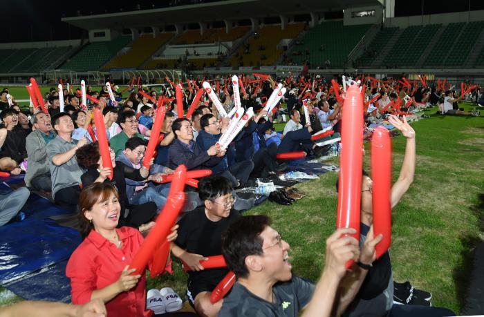 | 지난해 9월 시민운동장에서 3천여명의 시민이 운집해 한일 축구결승전 승리를 기원하고 있다 <미디어 타임즈> |