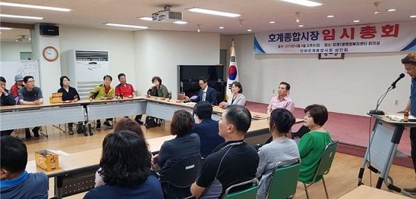 안양시 호계동에 위치한 호계종합시장은 시장 바로 옆에 위치한 덕현지구 재개발로 2017년 7월부터 지역 주민들의 이주가 시작됨에 따라 지속적으로 매출이 떨어져 어려움을 겪어 왔다.