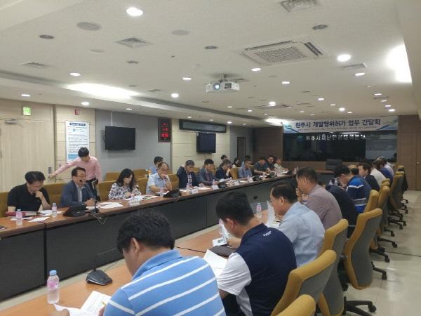 원주시는 지난 13일 원주시청에서 개발행위허가와 관련한 민원처리기간 단축, 허가지연에 따른 시민불편 방지 및 개발과 보전의 조화 있는 도시개발 발전 방안을 모색하기 위해 지역 측량설계 업체와 간담회를 개최했다.