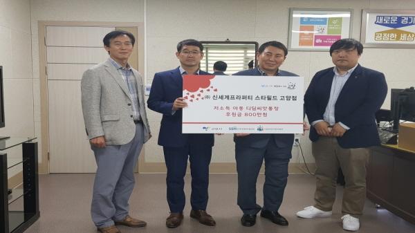 고양시는 지난 13일, ㈜신세계 프라퍼티 스타필드 고양점이 고양시 저소득층 아동들의 자립지원을 위한 디딤씨앗통장사업에 800만 원의 후원금을 전달했다고 밝혔다.