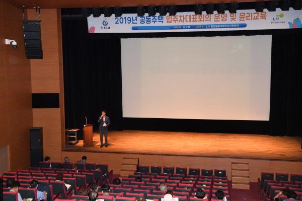 하남시는 하남문화예술회관에서 관내 공동주택 101개 단지의 동별 대표자 및 관리소장 등 약 160여명이 참석한 가운데 ‘공동주택 입주자대표회의 운영 및 윤리교육’을 실시했다고 14일 밝혔다.