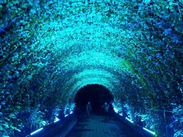 꽃길에 아름다운 조명이 더해져 오가는 이들의 눈길을 사로잡고 있다.