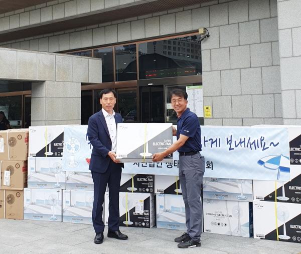 이날 전달된 선풍기는 생태조경협회 회원들이 더위에 취약한 어르신 등 수원시에 거주하는 어려운 이웃을 돕기 위해 성금을 모아 마련했다.