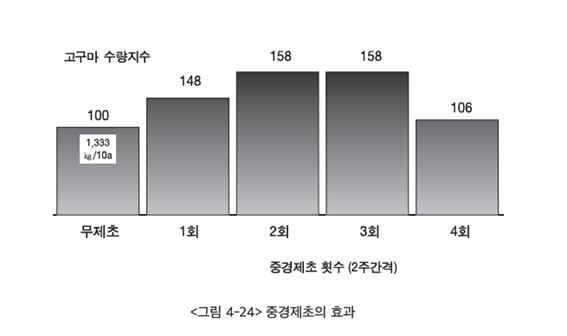 또한, 정식 후 넝쿨이 우거지기 전에 김매기를 해줘야 고구마 수량을 높일 수 있다.