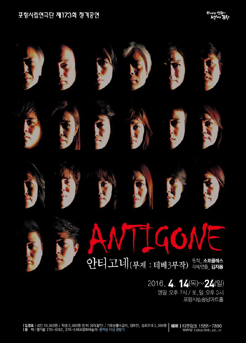 포항시립예술단(단장 이재춘 포항시 부시장)은 오는 14일(목)부터 24(일)까지 포항시립중앙아트홀에서 포항시립연극단 제173회 정기공연 를 선보인다. 고대 그리스의 위대한 극작가 소포클레스의 오이디푸스 3부작 중 마지막 작품인 는 포항시립연극단이 오랜만에 선보이는 고전극으로서 치열한 경쟁 속에서 생활하는 현대인들에게 관용과 용서, 배려와 조화라는 보편적인 진리를 일깨워 주고자 하는 한편 고전형식을 타파하는 실험적인 양식에 도전해 고전극의 또 다른 묘미를 관객들에게 선사할 예정이다. 안티고네는 오이디푸스 왕의 딸이다. 아버지이자 왕인 오이디푸스가 스스로 눈을 찔러 실명한 채로 떠돌아 다니게 되고, 두 오빠 폴리네이케스와 에테오클레스가 왕권을 놓고 다투다 모두 죽는다. 그리하여 안티고네의 삼촌인 크레온이 왕이 된다. 크레온은 에테오클레스만 성대히 장례를 치러주고 폴리네이케스의 시체는 들에 그냥 버려두라는 포고를 내린다. 안티고네는 혈육의 정에 이끌려 크레온의 명령을 어기고 들에 버려진 폴리네이케스의 시체를 몰래 묻어준다. 이 사실을 안 크레온은 안티고네를 생매장형에 처한다. 안티고네를 연모하던 크레온 왕의 아들 하이몬도 안테고네를 따라 죽기로 결심하는데... 소포클레스의 는 그리스 비극의 전형적인 구조를 택하고 있으며 그 어떤 극작품보다 정교한 플롯을 보여 주고 있다. 이 작품은 군더더기가 전혀 없는 압축된 구조를 유지하고 있으며, 모든 내용이 안티고네의 큰오빠이며 크레온의 생질인 폴리네이케스의 매장이란 단일한 사건을 중심으로 빈틈없는 인과관계의 맥락 속에서 치밀하게 전개된다. 또한 독일의 저명한 철학자 헤겔은 이 작품은 가장 숭고하고 가장 완벽한 예술 작품 중의 하나이며 여주인공 안티고네는 “지상에 나타난 인물 중 가장 고결한 인물”이라고 극찬했다. 이번 공연의 각색과 연출은 현재 극단 프로젝트팀 ‘이틀’ 대표이자 동의대학교 연극영화과 전임교수인 김지용 교수가 맡아 한단계 높은 완성도로 시립연극단과 함께 관객들을 만날 예정이다. 김지용 연출가는 부산연극제 연출상, 신춘문예 희곡부문 당선 등 다수의 수상경력을 가지고 있으며, 뮤지컬 , 외에도 , 등 수많은 연극, 뮤지컬 작품에서 연출을 맡아 경력을 인정받은 유능한 연출가이다. 14일(목) 저녁 7시 첫 공연을 시작으로 24일(일)까지 총 10회에 걸쳐 포항시립중앙아트홀에 올려지며 공연시간은 평일 저녁 7시, 주말(토, 일) 오후 3시이고(18일 월요일 공연 없음), 중학생 이상 관람이 가능하다. 한편 입장료는 일반인은 1만원, 학생은 5천원, 20인 이상 단체 관람시 일반 7천원, 학생 3천원이다. 복지할인 대상자(기초생활수급자, 장애인, 차상위계층, 국가유공자, 다자녀가정 등)는 3천원으로 관람할 수 있다. 공연티켓은 티켓링크(1588-7890)에서 현재 예매중이며, 기타 문의는 포항시 문화예술과(270-5484)로 하면 된다.