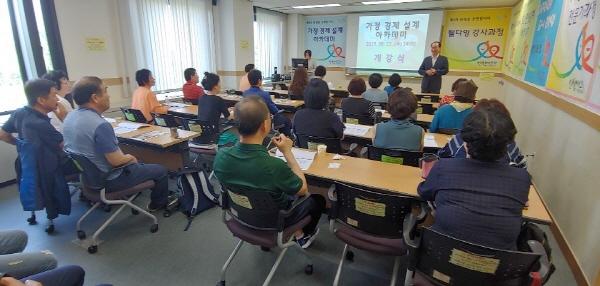개강식에 이은 첫 강의는 ‘미래사회에 대한 이해와 자산관리의 변화’를 주제로 노후 파산의 이유와 각자의 자산에 대해 살펴보는 시간을 가졌다. 오는 7월 18일까지 연금 설계하기, 보험 사용 설명서, 부채 권하는 사회 속의 올바른 신용 관리, 합리적 소비습관을 주제로 은퇴 후 재무관리에 대한 유익한 교육을 진행할 예정이다.