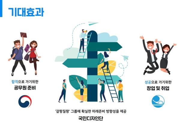 인사혁신처-동작구 국민디자인단은 오랜 기간 공무원 시험을 준비하면서 사회 적응기를 놓친 많은 청년층에 대해 정확한 공직 정보 제공, 채용 제도 의견 수렴, 진로 탐색, 공직·민간 취업 성공자의 멘토링 등을 통해 명확한 진로 설정을 돕는다.