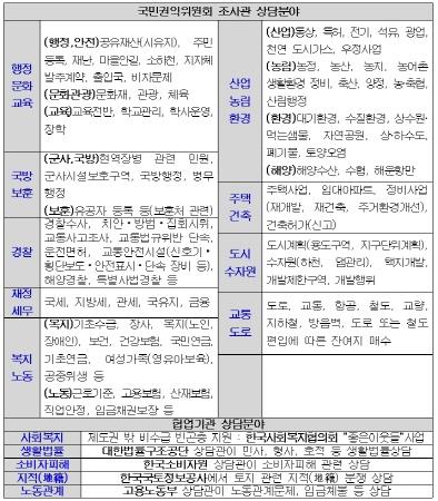 상담분야는 일반행정, 문화, 교육, 국방, 보훈, 노동, 산업, 농림, 환경, 도시계획, 교통, 도로, 세무, 주택, 건축, 경찰 등 모든 행정 분야이다.