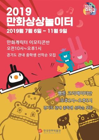 한국만화박물관이 웹툰 작가를 꿈꾸는 청소년을 위한 ‘2019 만화상상놀이터’ 프로그램 교육생을 추가 모집한다.