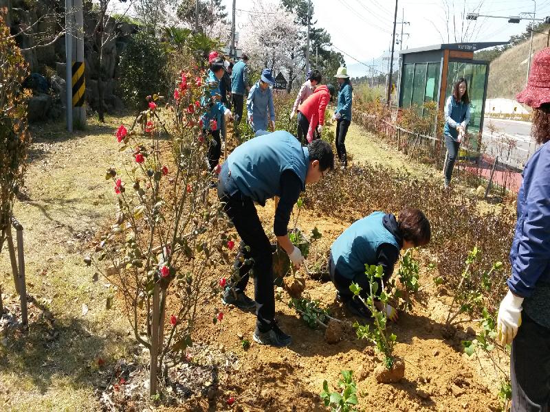 이번 행사는 초원빌라 주민 10여명, 연초면과 하수처리과 직원 20여명이 참여하여 초원빌라 입구 도로변 화단 200㎡에 연초면에서 준비한 수국 50주, 국화 200본, 하수처리과에서 준비한 연산홍 200주 등을 식재하여 연중 꽃을 감상할 수 있는 계기를 마련했다.