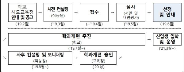 교육부는 확정 명단을 교육청과 학교에 안내하고 이에 소요되는 재원을 내년도 보통교부금 기준재정수요 산정 시 반영할 계획이며, 지원이 확정된 학교는 추진계획에 따라 시도교육청의 학과개편 승인절차를 거쳐 2021학년도부터 신입생을 모집하게 된다.