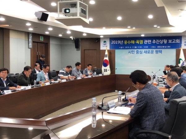 평택시는 17일 시장, 부시장, 관련 실·국·소장 등 20여명이 참석한 가운데 ‘2019년 여름철 풍수해, 폭염관련 추진상황 보고회’를 개최했다.