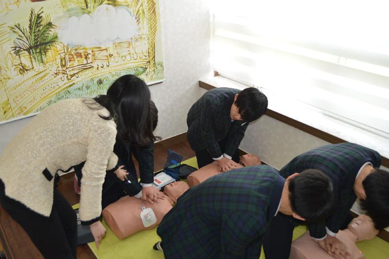 학생들은 응급상황 시에 당황하지 않고 꺼져 가는 생명을 살릴 수 있도록 점심시간 및 방과 후 시간을 이용하여 매일 2명씩 2조를 이루어 개별 심폐소생술 교육(흉부압박, 기도유지, 인공호흡 등)을 받고 있다.