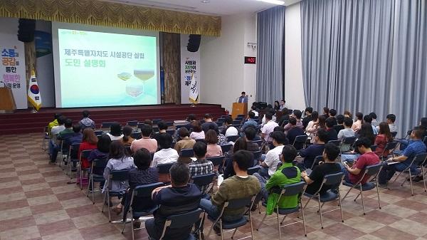 제주특별자치도는 지난 14일, 제주시청 제1별관회의실에서 도민과 제주시 직원 200여명 참석한 가운데 ‘시설공단 설립에 대한 설명회’를 개최했다.