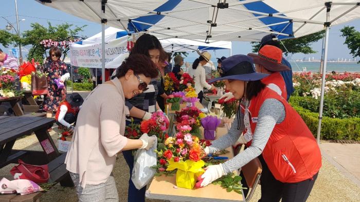 포항시는 17일, 영일대장미원에서 일반시민들과 함께 「시화장미 순자르기 및 장미장식 체험 행사」를 개최했다.