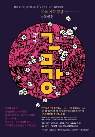 성남시는 오는 22일 오후 6시 30분, 23일 오후 3시 성남아트센터 앙상블시어터에서 ‘2019. 가극 금강 낭독 공연’을 연다고 18일 밝혔다.