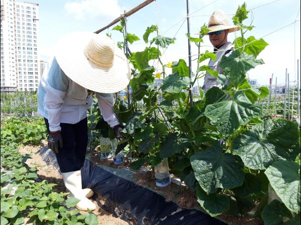 3월 실시한 공개 분양을 통해 현재 총 1065세대 주민이 텃밭을 가꾸고 있으며, 키우는 작물은 오이·토마토·고추·감자·땅콩·상추·열무·배추 등으로 다양하다.