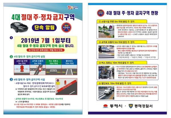 동해시가 고질적인 안전무시 관행을 근절하기 위한 정부정책에 따라 불법 주·정차 지역 중 4대 절대 금지구역에 대해 강력한 단속에 나선다.