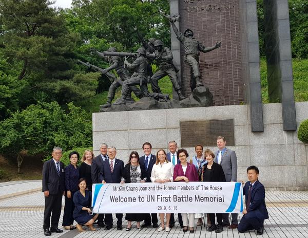 루이스 페인 주니어 前미연방하원의원 일행 13명이 김창준 미래한미재단 이사장 내외와 함께 지난 16일 유엔군초전기념관을 방문해 죽미령전투에 대한 전시를 관람하고 이어 유엔군 초전기념비와 죽미령 유엔초전기념 평화공원 조성사업 현장을 둘러보는 등 뜻깊은 시간을 가졌다.