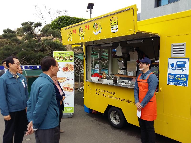 한편 권민호 거제시장은 푸드 트럭 2호점을 찾아, 영업하는데 어려운 점은 없는지 살펴보고, 나라 안팎의 경제가 어려운 상황 속에도 포기하지 않고 창업의 뜻을 이룬 박강민 씨에게 격려의 메시지를 전하면서 대박나기를 기원한다고 덧붙였다.