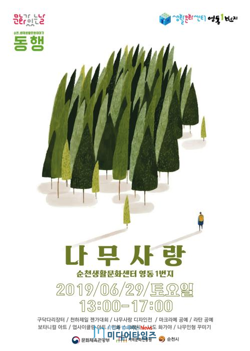 2층 청년센터 문화공연장에서는 이색 나무악기 연주자 봄눈별의 평온한 음악회 공연(14시~15시)도 진행된다. 체험형 프로그램으로는 순천창작예술촌 레지던시 유도영 작가와 함께하는 목재 업사이클링 아트 체험, 어르신 문화프로그램 참여자들이 진행하는 민화 스크래치, 생활문화센터 활성화 프로그램인 물 드림의 ‘나도 화가야’, 마크라메 공예, 라탄 공예, 나무인형 꾸미기, 보타니컬 아트 부채공예 등의 다양한 프로그램을 운영한다.