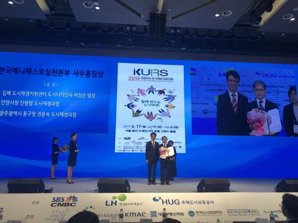 이날 시상대에 선 진형렬 안양시도시재생과장은 안양8동 명학마을 도지새생을 우리나라 최고의 모델로 만들겠다고 포부를 밝히기도 했다.