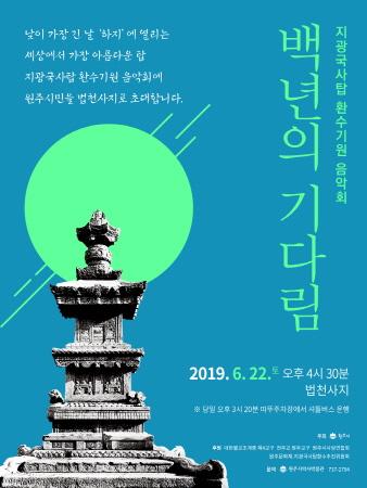 원주시는 오는 22일 오후 4시 30분 부론면 법천사지에서 지광국사탑 환수를 기원하는 마음을 담아 ‘백년의 기다림’이라는 제목으로 음악회를 개최한다.