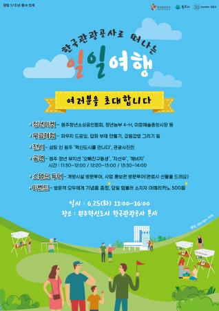 먼저 한국관광공사는 오는 25일 공사 창립 57주년을 맞아 ‘한국관광공사로 떠나는 일일여행’을 주제로 ‘2019 원주시민 소통행사’를 개최한다.