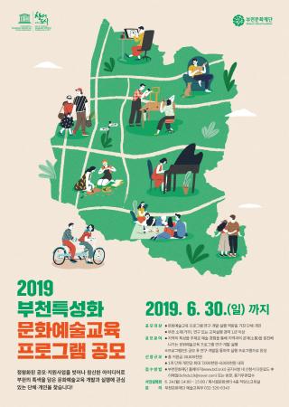 부천문화재단은 2019 부천특성화 문화예술교육 프로그램 공모, 2019 프로젝트 시민오케스트라 시민워크숍 운영 단체 모집을 통해 지역 문화예술교육 프로그램 개발·운영을 지원한다.