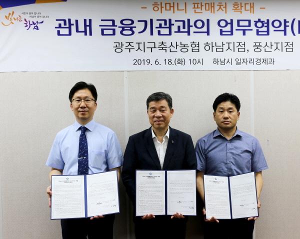 이날 협약식에는 박건석 일자리경제국장, 심흥석 광주지구축산농협 하남지점장, 원경섭 풍산부지점장이 참석해 협약을 맺었다.