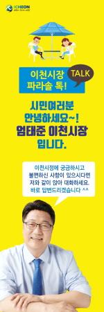 첫 번째 ‘이천시장 파라솔 톡~’은 지난달 30일 중앙통 문화의 거리에서 첫 번째 ‘이천시장 파라솔 톡~’을 운영해 다양한 계층들과 소통해 보육, 청소년, 노동, 교통, 도로, 문화 등 여러 분야에서 대화가 이어졌다.