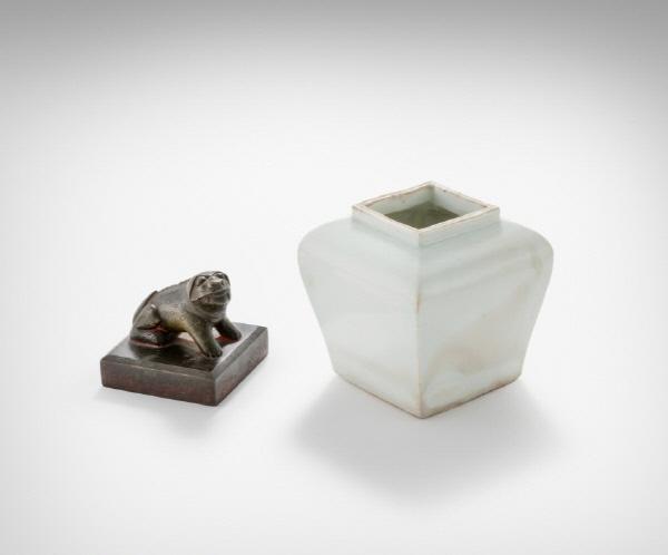 이번에 들어온 ‘백자이동궁명사각호’는 조선 19세기 분원 관요에서 제작된 단아한 형태의 사각호로, 바닥면에 청화로 쓴 ‘履洞宮’이라는 명문이 있다. 궁은 왕실 가족이 사용하는 장소에 붙이던 명칭으로 왕자와 공주, 옹주가 혼인 후 거처하던 집도 궁으로 불렀다.