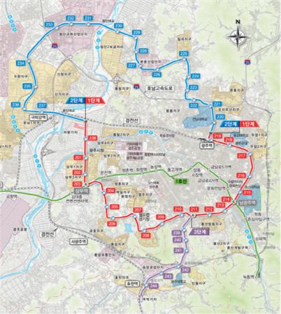 2단계 구간은 광주역에서 전남대, 수완지구를 거쳐 광주시청까지의 20㎞를 연결해 1단계와 순환망을 이루게 되며, 3단계 구간은 백운광장에서 진월을 거쳐 효천역을 잇는 지선이다.