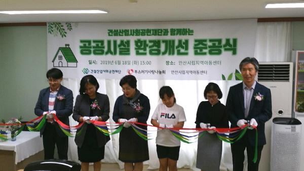 안산시 시립지역아동센터는 아동들의 안전한 환경을 조성하기 위해 건설산업사회공헌재단과 함께 센터 내 환경개선 공사를 마치고 준공식을 가졌다고 20일 밝혔다.