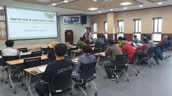 이번 기술교육은 가축의 폭염피해예방과 피해 최소화를 위해 농촌진흥청 국립축산과학원 가금연구소 강환구 박사의 효율적인 육계 및 산란계 고온기 사양관리에 대한 특강과 농촌진흥청 재해대응, 이병철 박사의 폭염 발생 시 현장 응급 대응요령에 대한 내용으로 구성됐다..