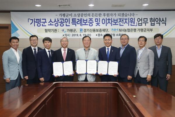 가평군은 소상공인들의 자금난 해소와 이자에 대한 부담을 완화하고자 경기신용보증재단, NH농협은행군지부와 ‘소상공인 특례보증 및 이차보전지원’ 업무협약식을 체결했다고 20일 밝혔다.