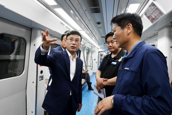 정하영 시장이 20일 김포도시철도 양촌차량기지를 방문, 김포공항역까지 왕복하며 김포도시철도 건설·운영과정 전반을 점검했다.